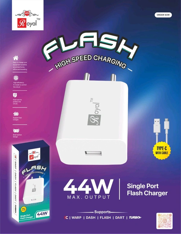 AS Royal 44Wts Singal Port USB Flash Charger (High Speed Charging , 6 Months Warranty)