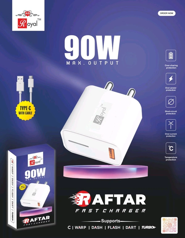 AS Royal 90Wts Raftar Series USB Flash Type C Charger (High Speed Charging , 6 Months Warranty)