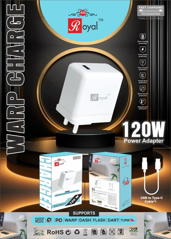 As Royal Warp Charge ( 120w ) Power Adapter Usb To Type-c Port Charger
