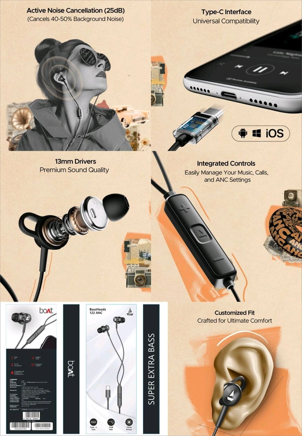 Boat Bassheads B-122 Anc Type C Megnet Metal Og Premium Quality Earphone