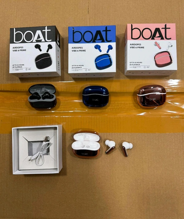 Boat New Airdopes Vibe-6 Prime Heavy Premium Quality Earbuds (Hard Box , Type C Port , 3 Different Colour)