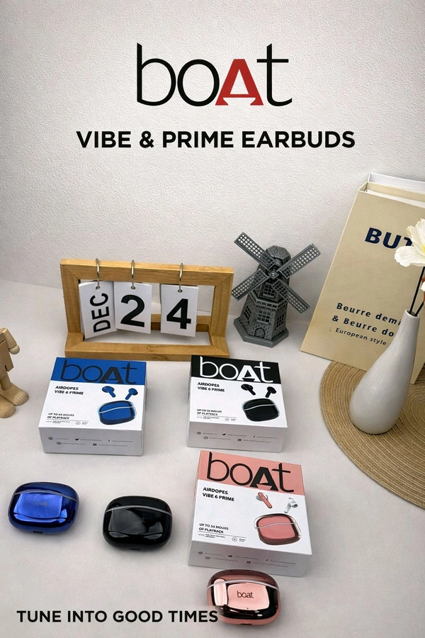 Boat New Airdopes Vibe-6 Prime Heavy Premium Quality Earbuds (Hard Box , Type C Port , 3 Different Colour)