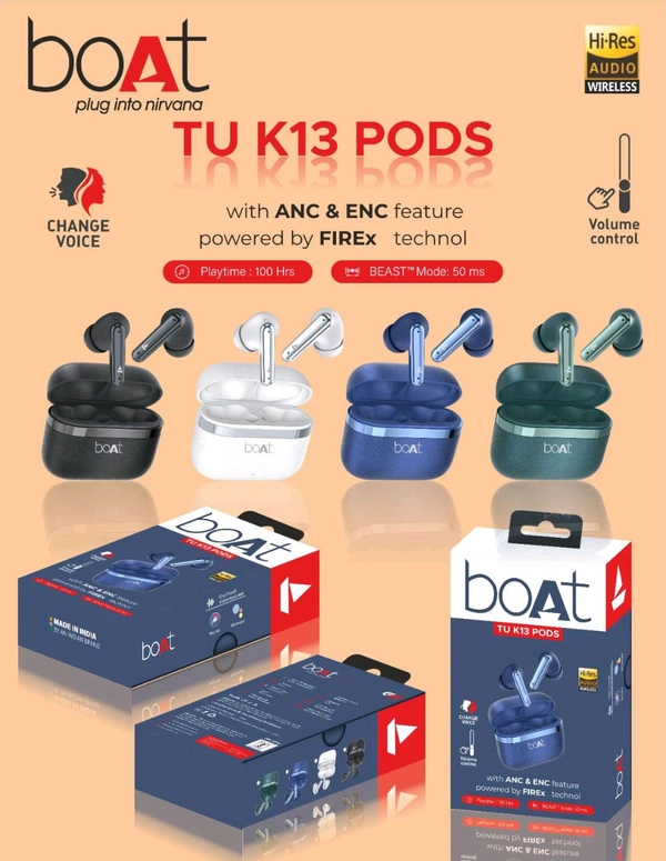 Boat Nirvana K-13 Pods Heavy Premium Quality (Hard Box, Type C Port) Earbuds