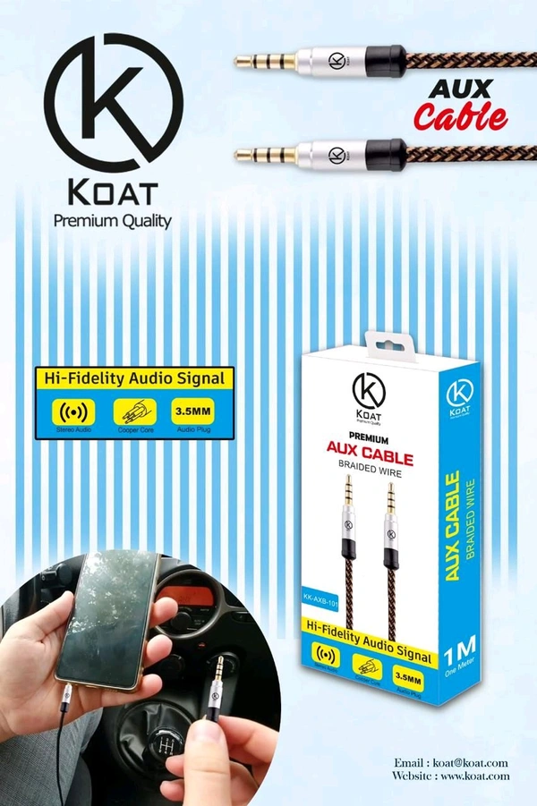 Koat Ax-101 Braided Wire 3.5mm Aux Cable ( 1mtr )