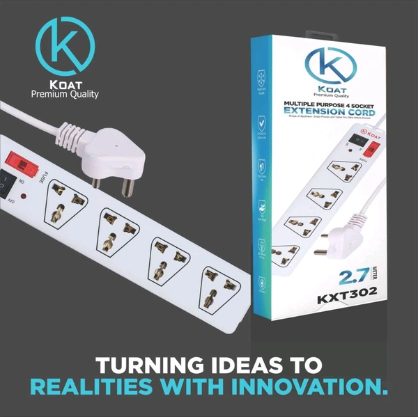Koat Kt-302 Multiple Purpose Extension Cord (4 Socket 2.7Mtr Cable 6 Months Warranty)