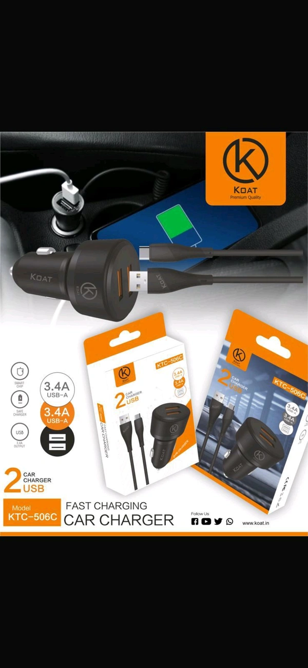 Koat Kt-506 Double Usb Type C Port 3.4Amp Output Car Charger