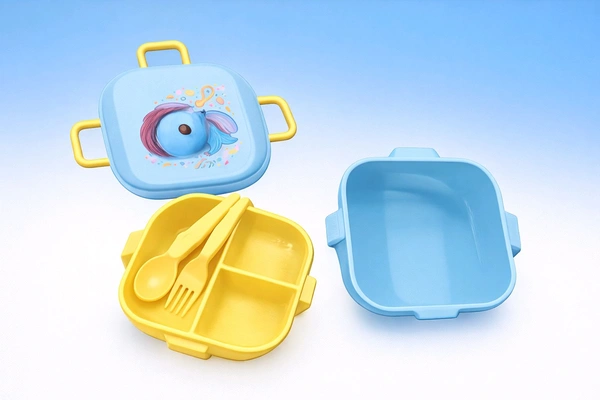 Lunch 😋 Box For Kid's ( 3 Corner ) + ( spoon 🥄 - 2pcs )