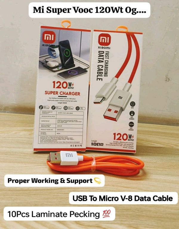 Mi Super Vooc 120Wts USB To Micro V-8 Port Data Cable Og Quality(6 Months Warranty)