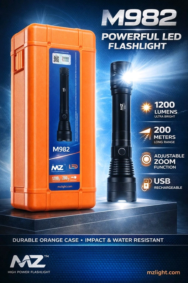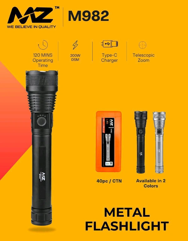 MZ M-982 Powerful Led Flashlight (200Wts Dsm , 120Min. Operating Time , Type C Port)