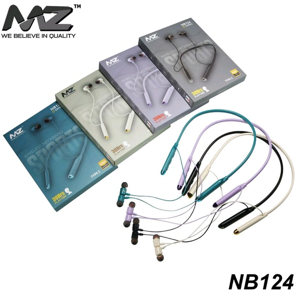 MZ New M-124 Wireless C-Series Nackband (30Hrs Play Time , Type C Charging Port , 4 Different Unique Colours)