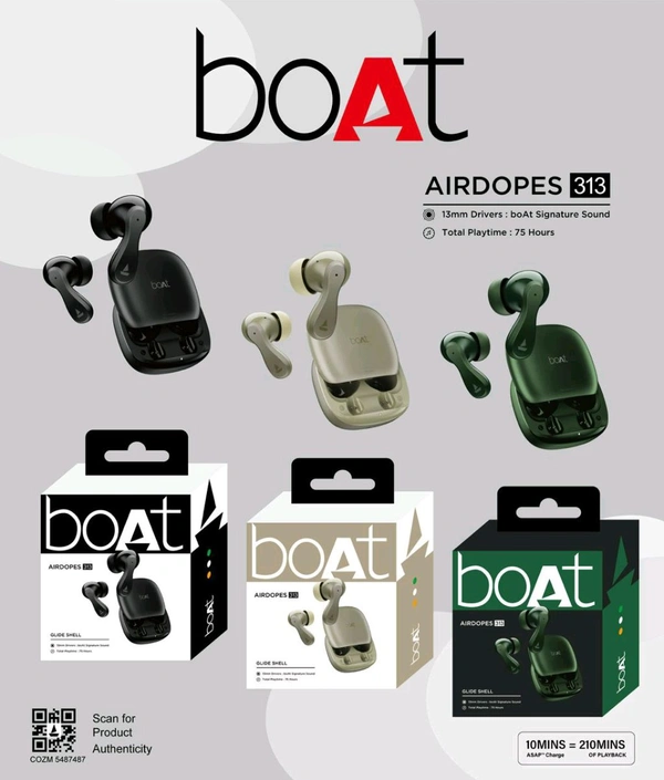 New 🆕 Boat B-313 Airbuds 1st Quality Bass sound 1by1 Lamination 3 Different Colour