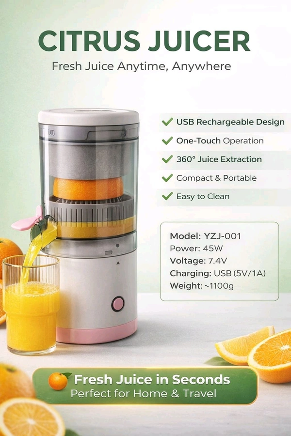 New Citrus Juicer (Usb Rechargeable Design | One-touch Operation|360° Juice Extraction | Compact And Portable| Easy To Clean)