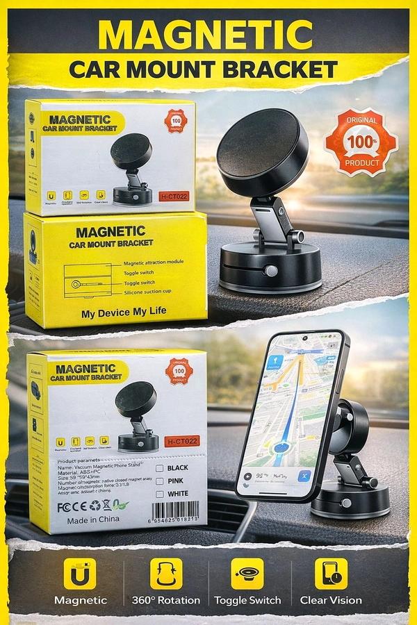 New CT-022 Magnetic Car Mount Bracket (Megnetic , 360° Rotating , Clear Vission , On-Off Switch)