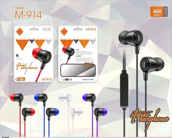 New M-914 Stereo Earphone With Multi Colour