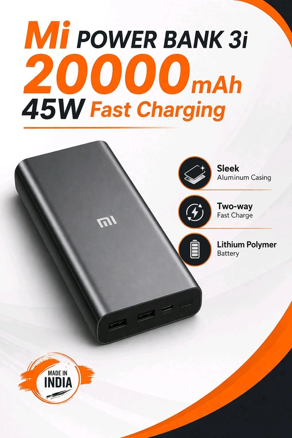 New Mi 3i 20,000mAh 45W Fast Charging Power Bank (Two-way Fast Charging Lithium Polymer battery ππ)