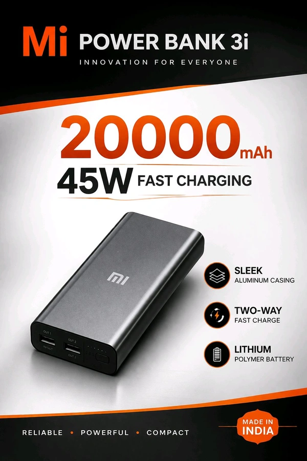 New Mi 3i 20,000mAh 45W Fast Charging Power Bank (Two-way Fast Charging Lithium Polymer battery ππ)