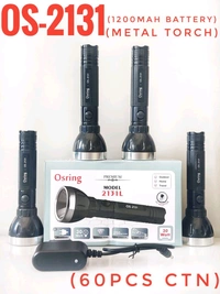Osring OS-2131 Metal Rechargeable Torch Light | 1200mAh Battery | 30W Powerful Beam | Long Range Flashlight | DC Pin Charger