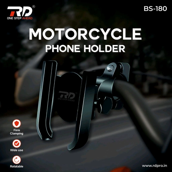 Rd Bs-180 Motorcycle Phone Holder ( Pure Matel + Rotatable + Firm Clamping + Wife Use )