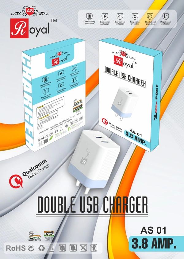 ROYAL AS-01 3.8AMP QUALCOMM QUICK CHARGER DOUBLE USB MICRO V-8 CHARGER