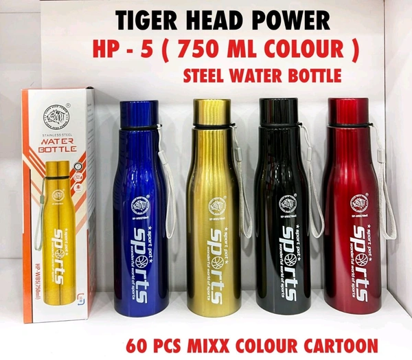 Tiger Head 750ml Steel Water Bottle HP-5 | Sports Design | Leakproof | Multi Colour Pack