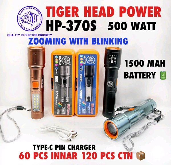Tiger Head Hp-370-S (500Wts Laser , Type C , Zooming , Blinking , Side White Light & Red / Blue Blinker)