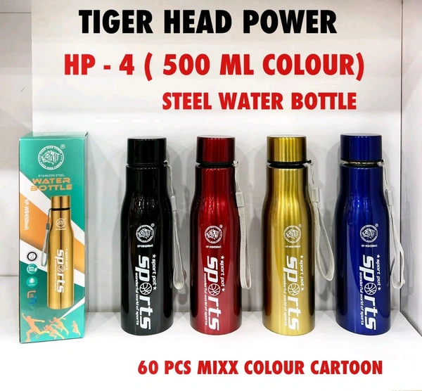 Tiger Head HP-4 500ml Steel Water Bottle | Sports Series | Assorted Colours | 60 PCS Mix Carton Pack