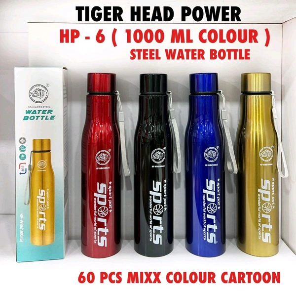 Tiger Head HP-6 1000ml Steel Water Bottle | Sports Series | Assorted Colours | 60 PCS Mix Carton Pack