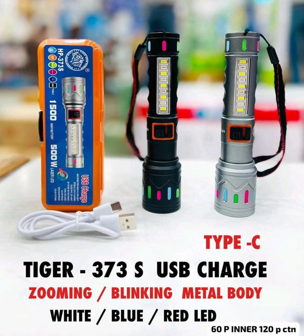 Tiger Head Power Hp-373 Zooming | Blinking|Metal Body | Side Tube |White , Red , Blue Light