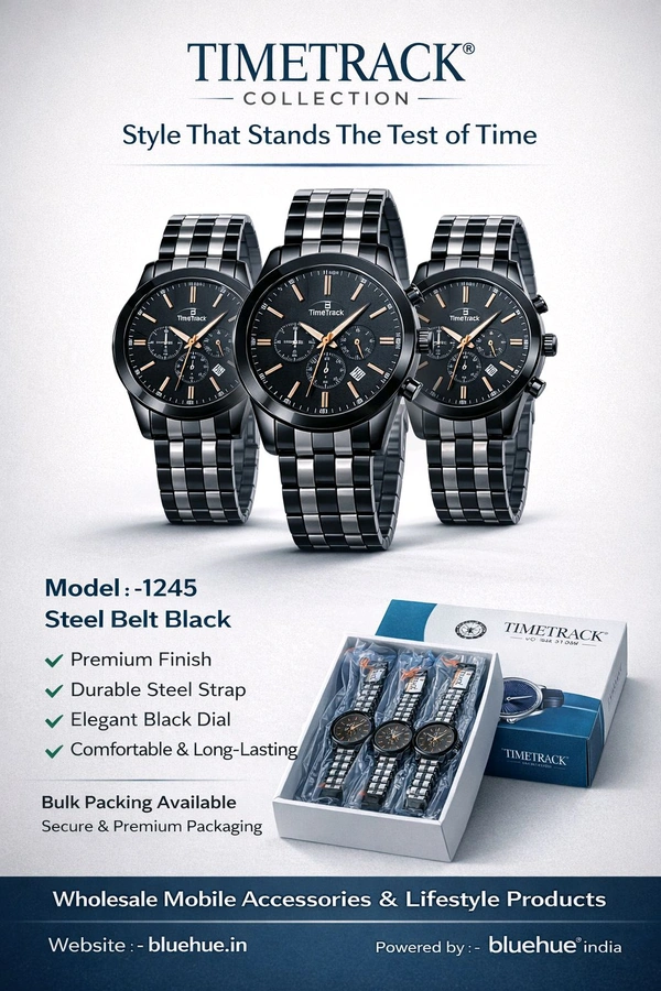 Time-Track New Premium Finish Steel Belt Black (1245) Watch ⌚