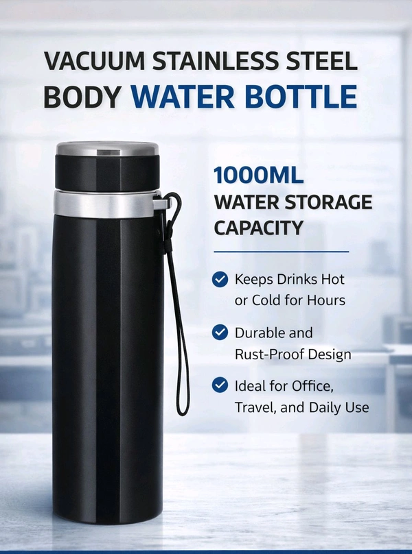 Vaccum Stainless Steel Flask Bottle (1000Ml , Keep Up To 12Hrs Hot & Cold )
